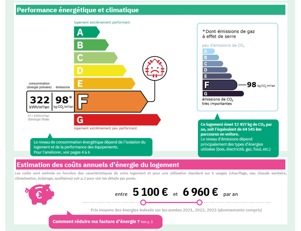 Consommations énergétiques - F - 322 kWh/m²/an.