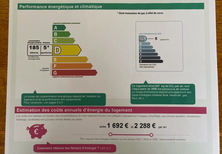 Consommations énergétiques - D - 185 kWh/m²/an.